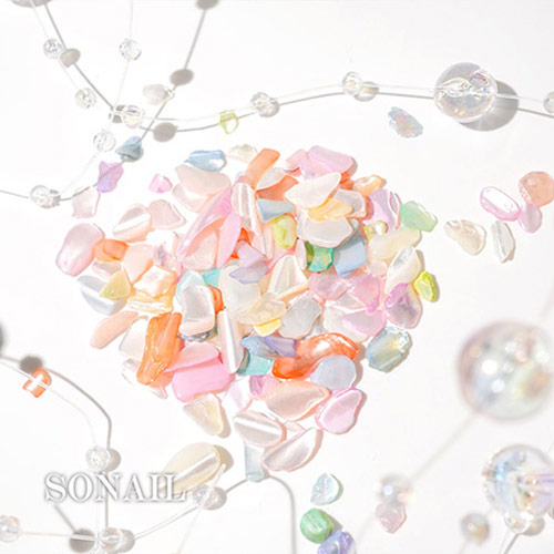 まるで花びらのような色とりどりのシェルがたっぷり入ったネイルアクセサリー。天然素材特有のユニークな形を活かして、シャレ感のあるネイルが簡単に完成します。